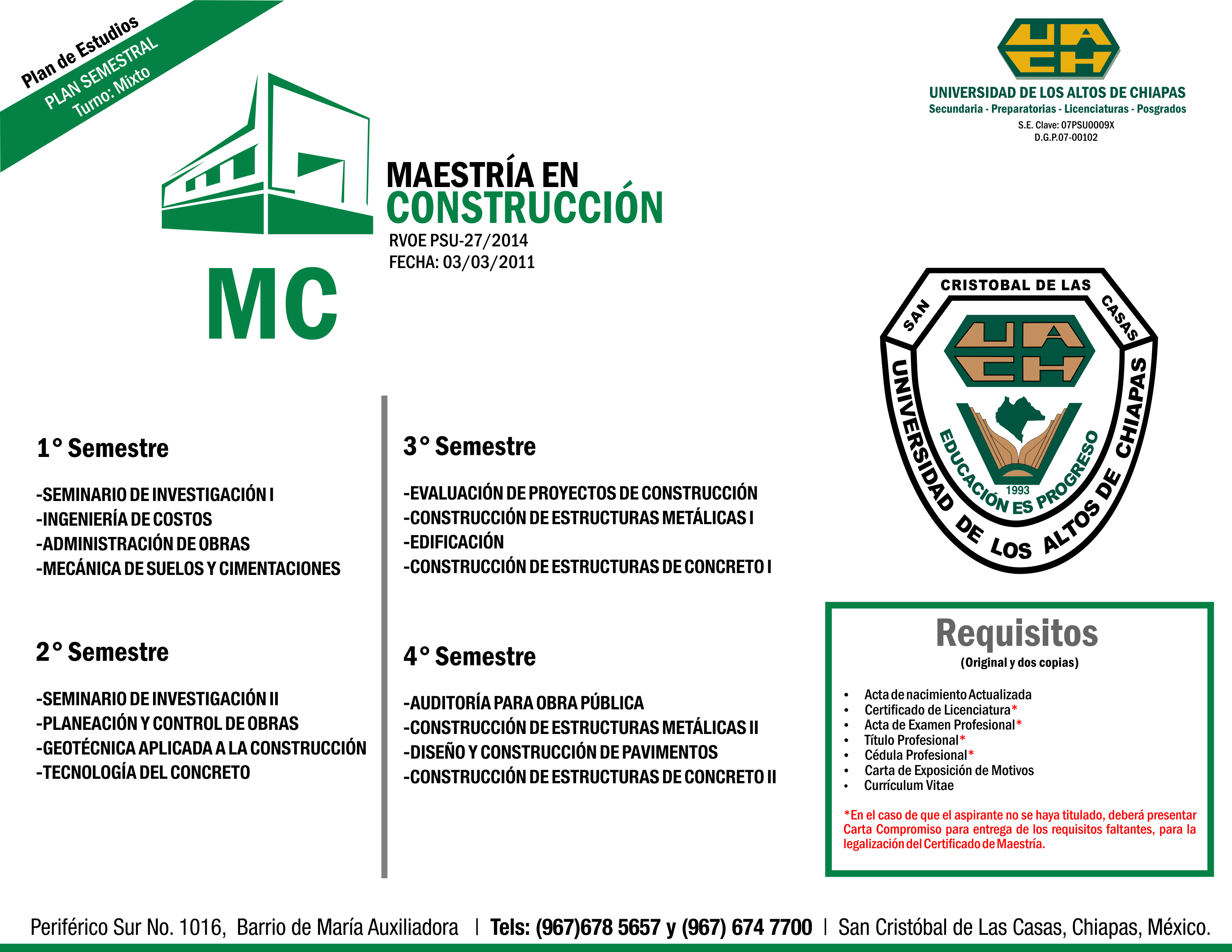 Esta maestría busca formar profesionales altamente capacitados para liderar y gestionar proyectos constructivos, integrando conocimientos avanzados en ingeniería, administración y legislación. El programa se enfoca en desarrollar habilidades para planificar, diseñar, y evaluar proyectos de construcción utilizando métodos modernos, así como para realizar análisis del impacto ambiental. Promueve competencias en coordinación, pensamiento lógico, y resolución de problemas, fomentando una actitud disciplinada y un compromiso con la investigación y la actualización continua en el campo de la construcción.